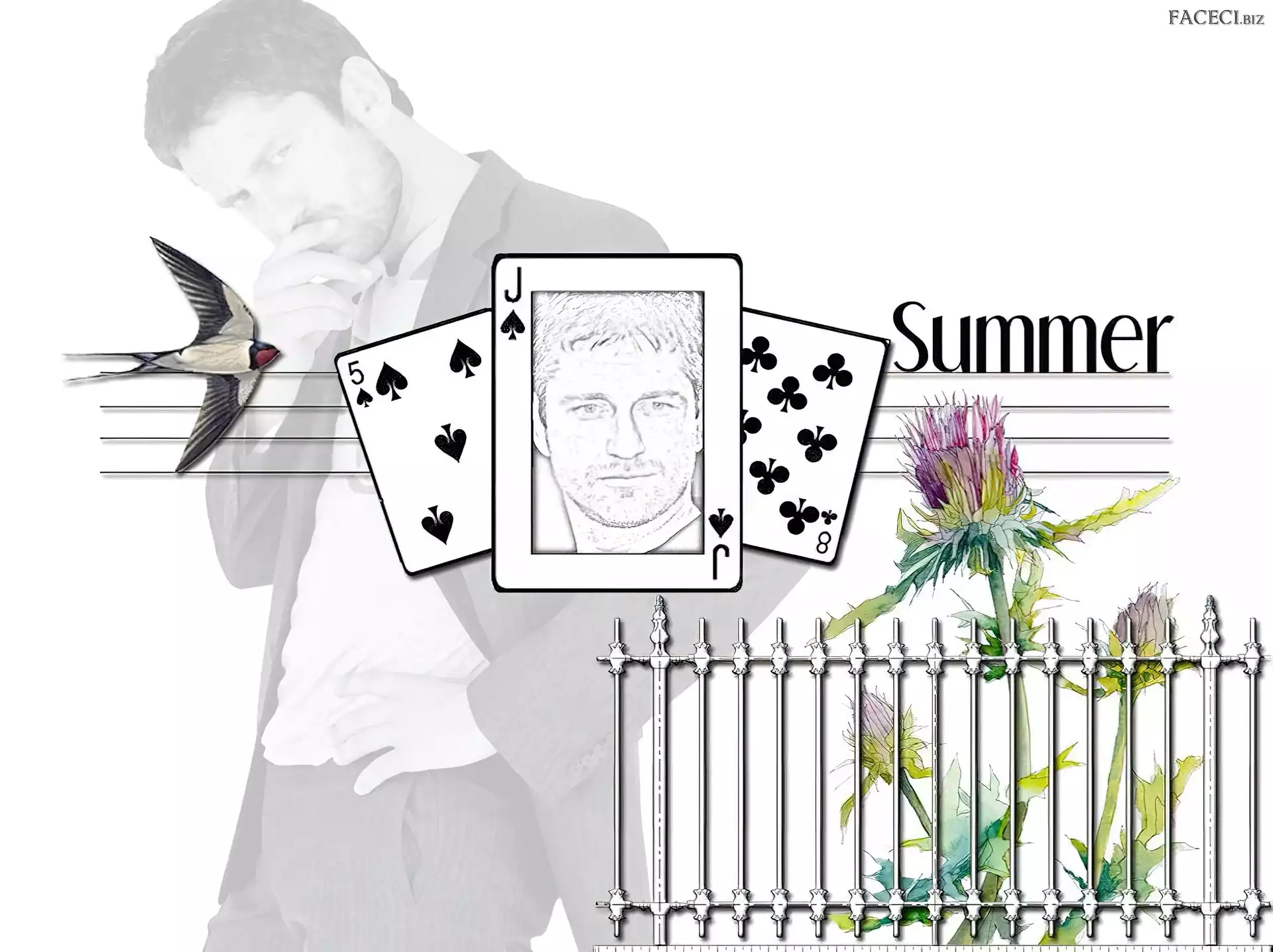 kwiat, Gerard Butler, karty - faceci.biz